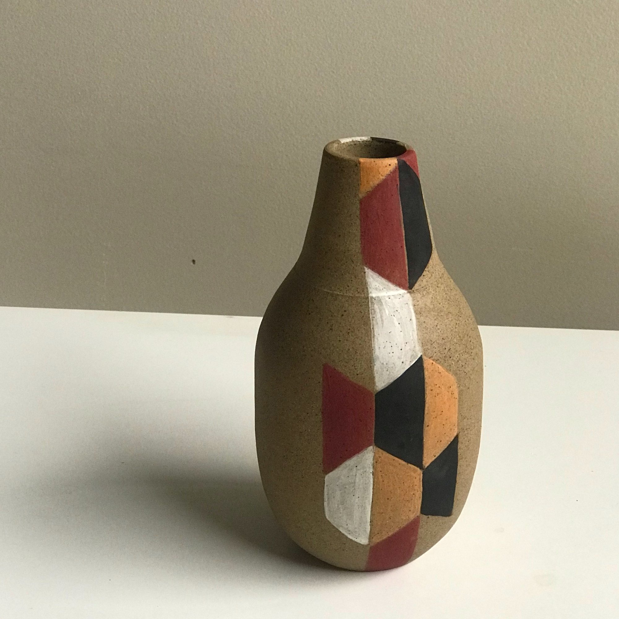 Tile Vessel is a decorated vase with a matt finish. Painted on both sides, display the vase to suit your mood!